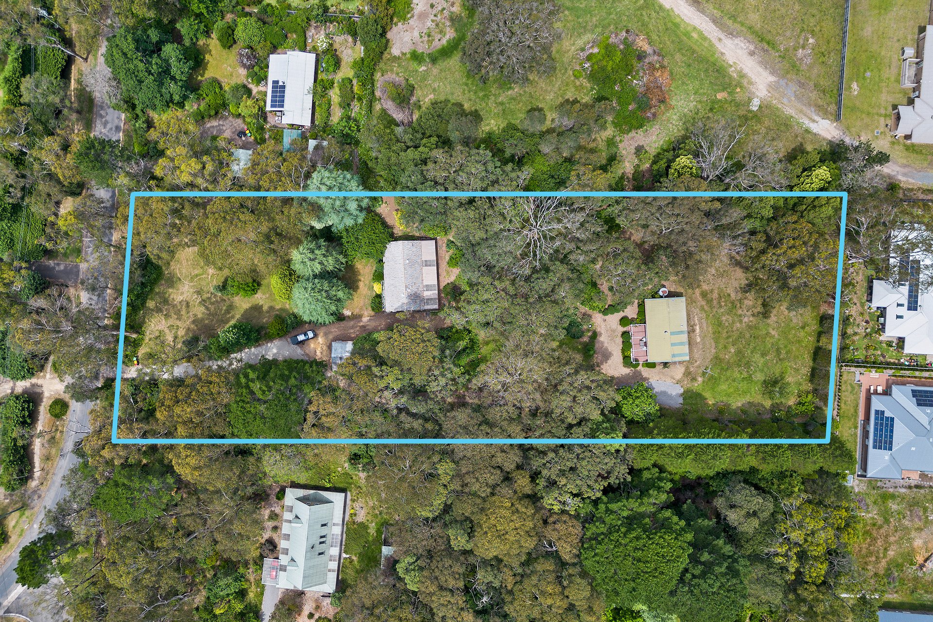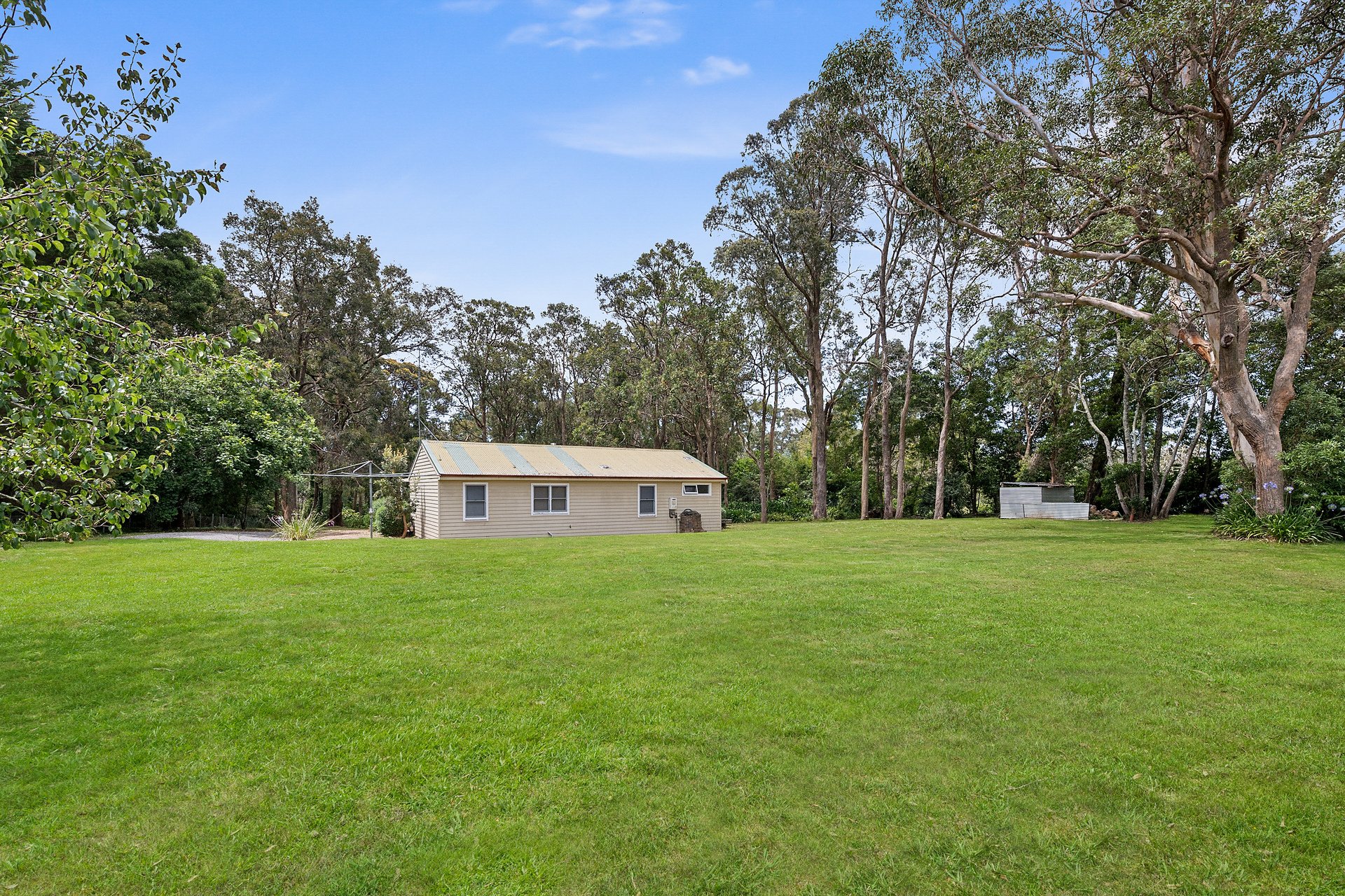 Uncover a hidden treasure situated on 7,303sqm of peaceful, private land, offering a brick and tile main residence, a separate weatherboard studio and DA-approved subdivision for five lots. The subdivision includes individual battleaxe blocks for each home, two vacant lots with street frontage, and a large battleaxe block at the rear. The primary residence features three bedrooms, a cozy living area with a slow-combustion fireplace, and a modernized open-plan kitchen with a breakfast bar and dining space. There's also a covered outdoor entertaining area equipped with a gas barbeque. The separate studio is tucked away amidst the lush gardens, includes two bedrooms, and a renovated bathroom complete with a striking black bathtub-ideal for extended family, guests, or a weekend rental. This exceptional property blends privacy and charm.